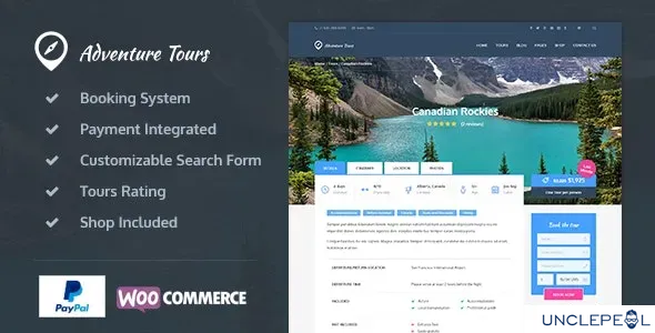 Adventure Tours theme is integrated with famous shopping plugin—WooCommerce. Therefore, it is possible to pay for tours with Paypal and other payment services provided by WooCommerce. Also, you can set up and manage a shop to sell various products.