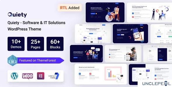 Quiety – Software & IT Solutions Theme is a powerful Easy to use, Mobile friendly, highly customizable IT solutions and SAAS products, built with Bootstrap 5 CSS framework and WooCommerce supported. 10 Stunning Homepages and 12+ inner pages are included in this theme. It is 100% responsive on standard devices. It is a powerful WordPress theme, built exclusively for companies, agencies, startup who are working in developing desktop and mobile applications, SaaS, software, IT solutions and other digital products. We have used Page builder with Drag and drop feature.