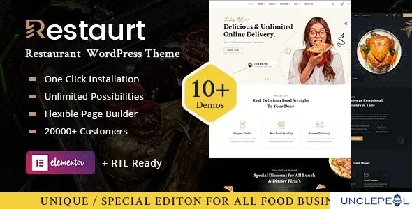 Restaurt is a cool-looking multipurpose theme well-suited for restaurants and other dining-related websites. 10+ demos, 40+ unique elements, intuitive theme options, 10+ headers and unique design ensure you have it all at your fingertips. And also does not require coding skills as it uses a powerful drag & drop page builder. Craft the unique and modern website you want and skyrocket your restaurant business.