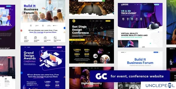 Make your website uniquely- 30+ predesign pages for conference & event web site. As uniquely showing conference & event informations are very crucial especially when & where questions, we focus on creating the various predesign pages for conference & event web site including sessions, schedule day, speakers, tickets table and many more. Moreover, simple steps are required to create with our pre-defined pages and content builder.