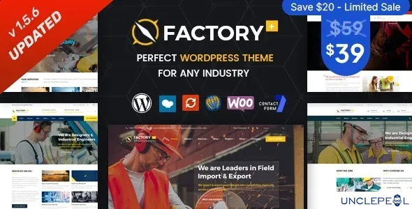 Factory Plus is the best Theme specifically made for some sectors like industry, Factories, Construction, Engineering, Machinery Business, Commodity Business, Power, Rail Business, Airplane, Ship Business, Oil & Gas Business, Petroleum websites. Not only for big sectors you can also use Factory Plus for your startup.