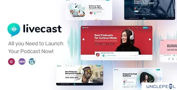 Livecast is a full toolkit(theme) to create a podcast/audio website with ease. It will help you launch your personal podcast in a beat! The theme includes a lot of practical podcast features and elements ideal for the podcasting industry. Livecast comes with a powerful audio player as well as the possibility of embedding content from Apple Podcast and other popular podcasting platforms.