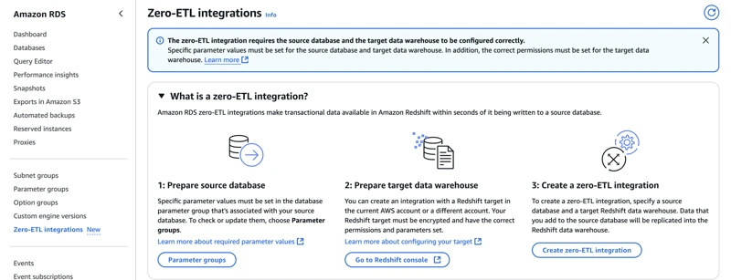 步骤3:创建零ETL集成。