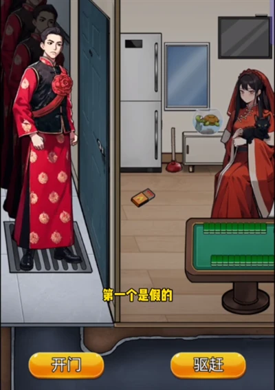 首先,你需要依次将以下物品交给新郎,并选择“驱赶”:蜡烛、猫、马桶搋子、鱼缸里的乌龟、冰箱里的烧鸡、柜子里的水壶。