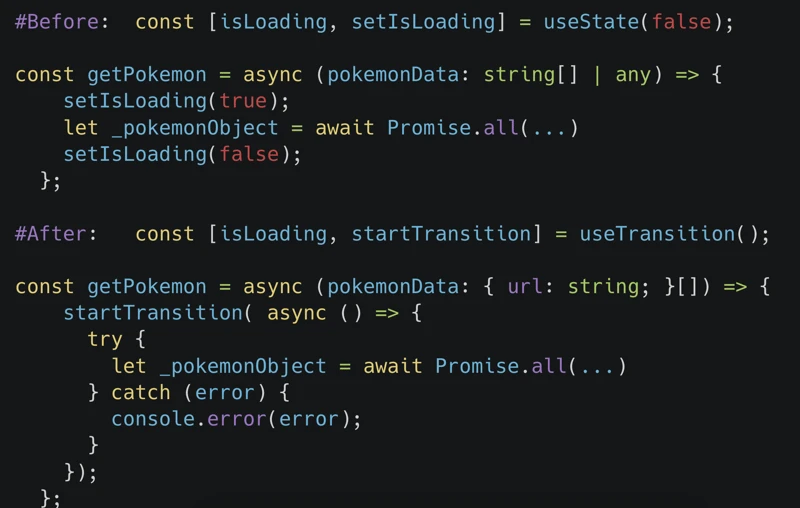 告别繁琐的手动加载状态管理!React 19 引入了 useTransition 钩子,简化了数据加载过程中的临时 UI 状态处理。使用 useTransition,你可以在后台加载数据时显示占位符 UI,数据加载完成后自动切换到实际内容,无需再手动管理加载状态。startTransition 会负责设置加载状态。下图展示了 useTransition 的强大功能: