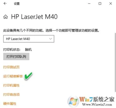 在打印机设置页面中,直接点击“运行疑难解答”链接,依据向导检查修复。