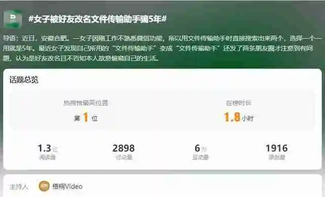 2月28日热搜:女子被冒充“文件传输助手”好友骗5年!