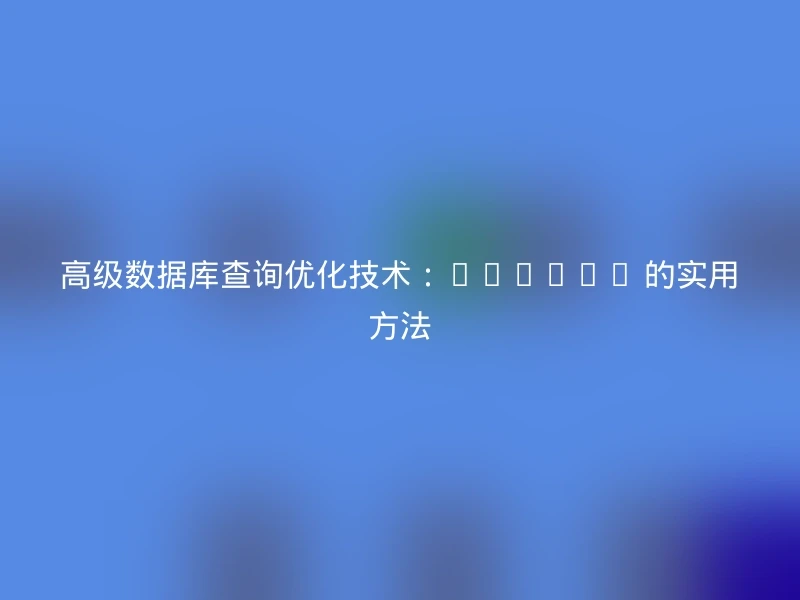 什么是查询优化?