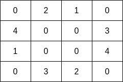 grid = [[0,2,1,0],[4,0,0,3],[1,0,0,4],[0,3,2,0]];