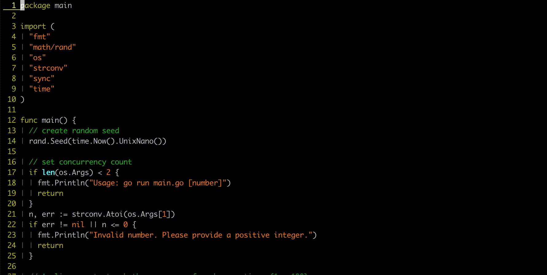 concurrency, _ := strconv.Atoi(os.Args[1]) // 从命令行参数获取并发数