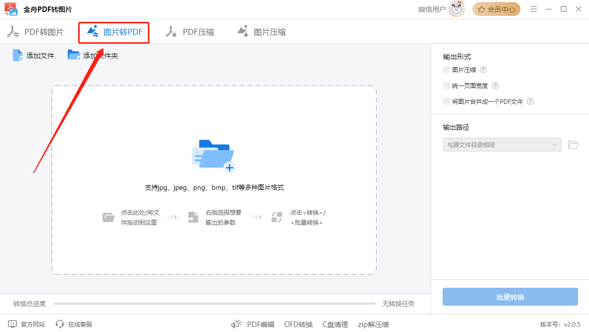 打开金舟PDF转图片软件,点击“图片转PDF”功能。