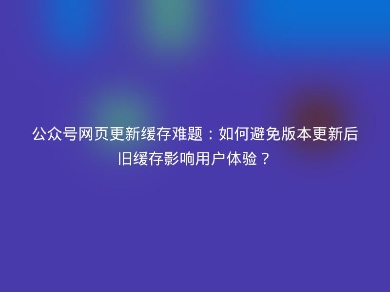 公众号运营者经常遇到网页更新后缓存导致用户体验不佳的问题。例如,以往的版本更新常常出现严重的缓存问题,即使尝试了添加meta标签、在后台添加版本号、修改文件名等方法,也无法完全解决,特别是嵌入式内容(如iframe或load加载的页面)的更新不完整问题。