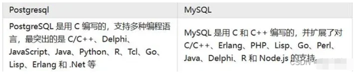 Mysql和Postgresql对编程语言的支持程语言的支持对比