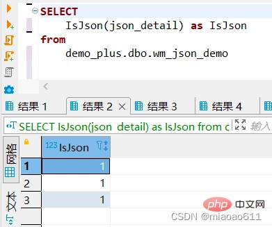 (2)IsJson:判断一个字符串是不是合法的Json格式。是返回1,否返回0,null返回null。