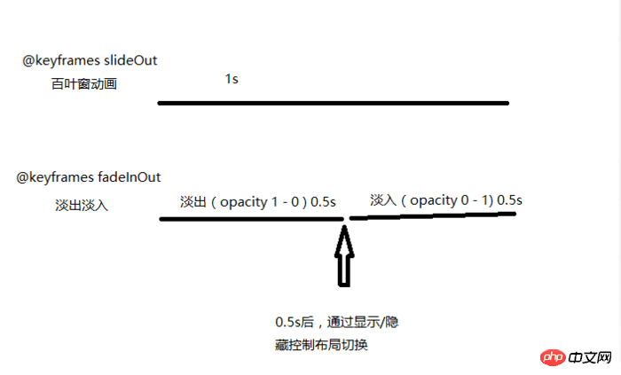 2,keyframes定义淡入淡出(透明度改变)和百叶窗口效果动画。