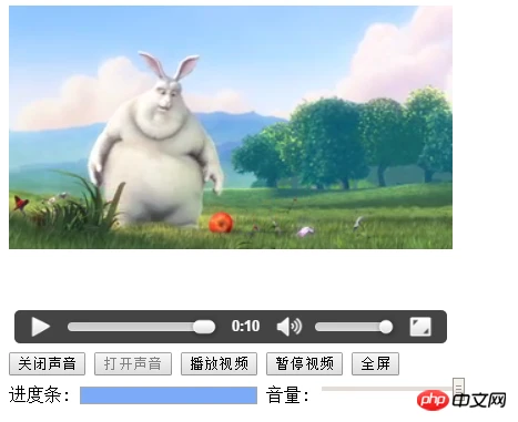 <script> var myVideo=document.getElementById("video"); var btn=document.getElementById("button"); btn[0].click=function(){ myVideo.muted=true;(是否静音:是) } btn[1].click=function(){ myVideo.muted=true;(是否静音:否) } btn[2].click=function(){ myVideo.play();(播放) } btn[3].click=function(){ myVideo.pause();(停止播放) } btn[4].click=function(){ myVideo.webkitrequestFullscreen();(全屏显示) } </script>