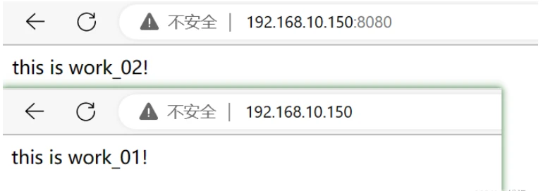 #两个不同文件夹,分别存放不同文件 [root@nginx ~]# mkdir /www/work_01 -p [root@nginx ~]# mkdir /www/work_02 [root@nginx ~]# vim /www/work_01/index.html this is work_01! [root@nginx ~]# vim /www/work_02/index.html this is work_02!