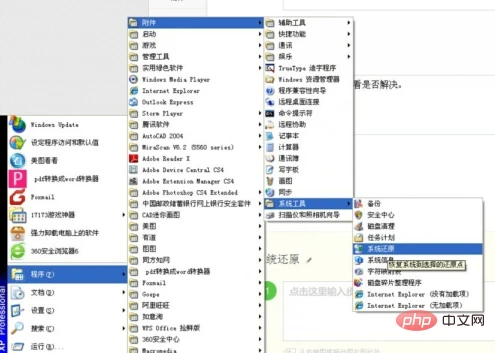 点击电脑桌面的开始菜单,依次找到选择并点击打开“程序”——“附件”——“系统工具”——“系统还原”选项。