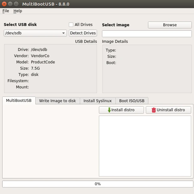 步骤 1MultiBootUSB 是一个自由、开源的跨平台应用程序,允许你创建具有多个 Linux 发行版的 U 盘。它还支持在任何时候卸载任何发行版,以便你回收驱动器上的空间用于另一个发行版。