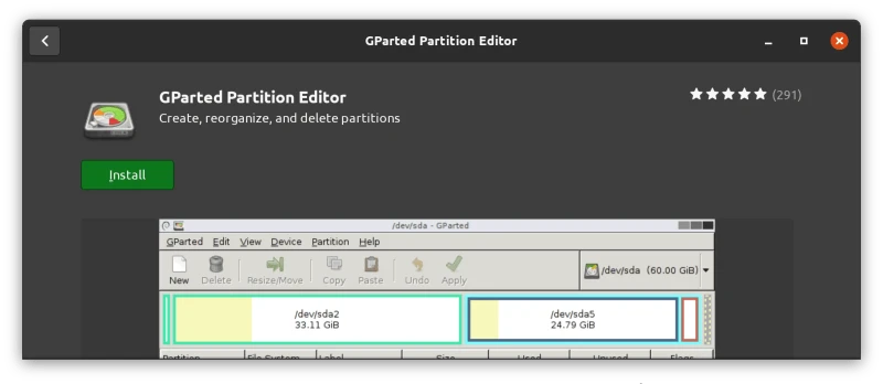 第一步是 安装 GParted,如果它还没有在你的系统中。你应该能够在你的发行版的软件中心找到它。