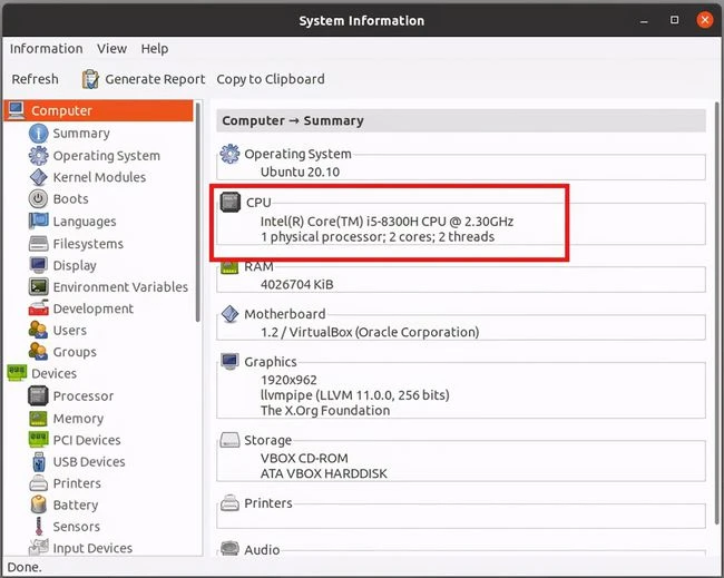 Hardinfo是一个图形用户界面(GUI)工具,可生成有关各种硬件组件的报告。它是用Gtk编写的。但是,如果没有可用的GUI显示,也可以从命令行运行它。