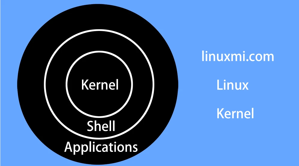 内核是与硬件交互的核心。最重要的是与内核交互的 shell。然后你有应用程序,命令行和图形,给你各种使用系统的方式。