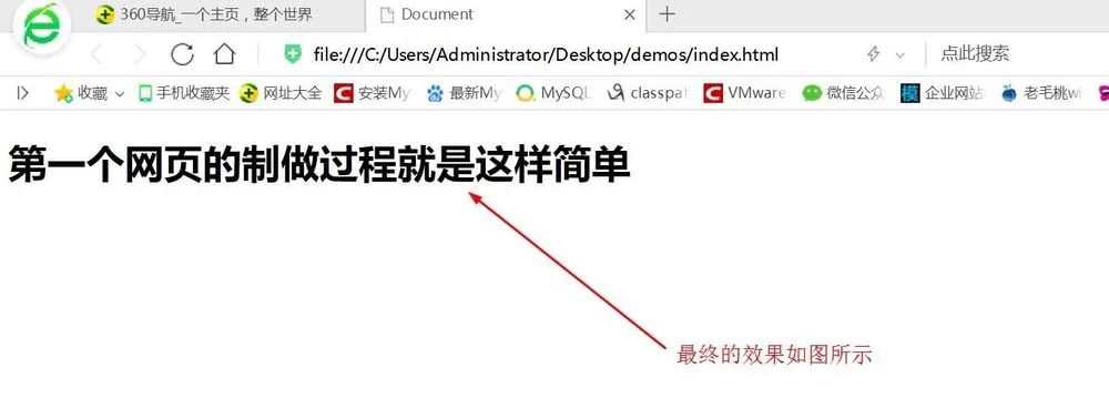 7、双击打开文件,一个简单的网页就这样制做好了简单吧!