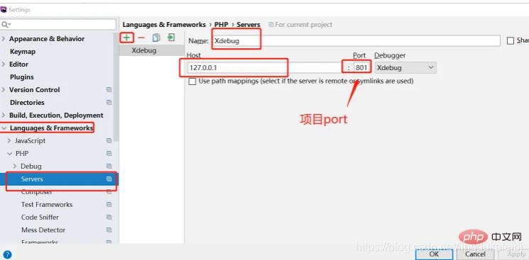 5、打开phpstorm,点击file-setting-选择language&framwors点击php ,点击【servers】,按照下图内容进行修改