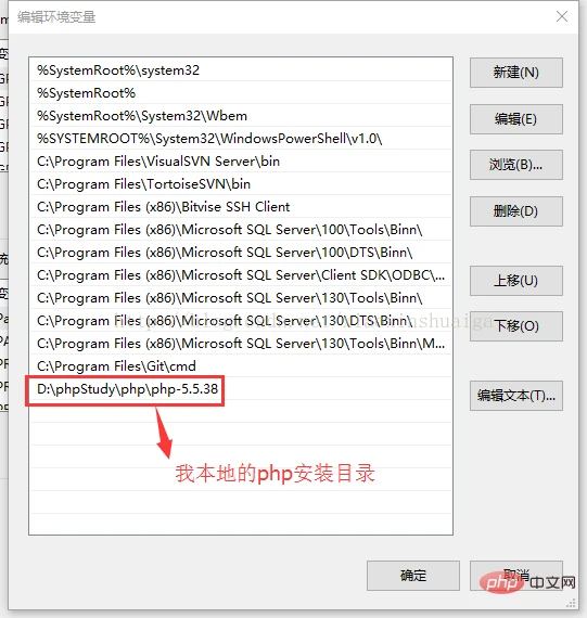 找到变量名为path的记录,双击添加一个环境变量,路径为php安装的目录,点击确定保存