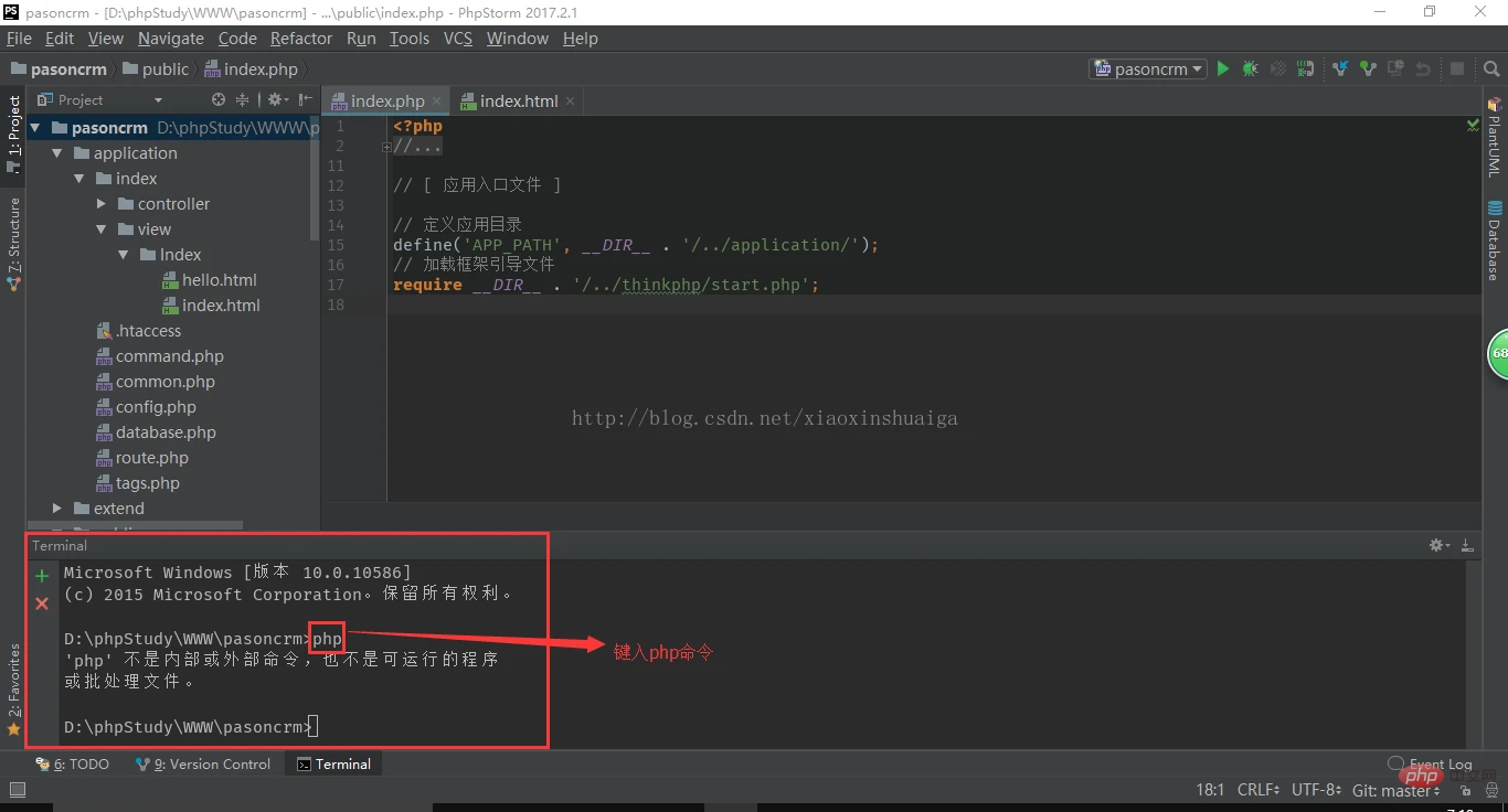 在Terminal窗口中输入php,会提示'php' 不是内部或外部命令,也不是可运行的程序,或批处理文件。这是没有添加环境变量的原因。