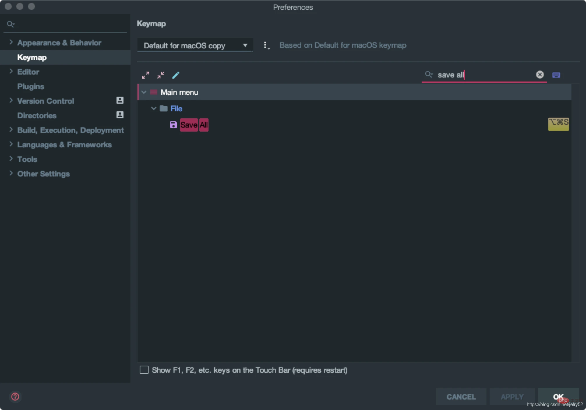 打开Preferences...,搜索“KEYMAP”并打开它;