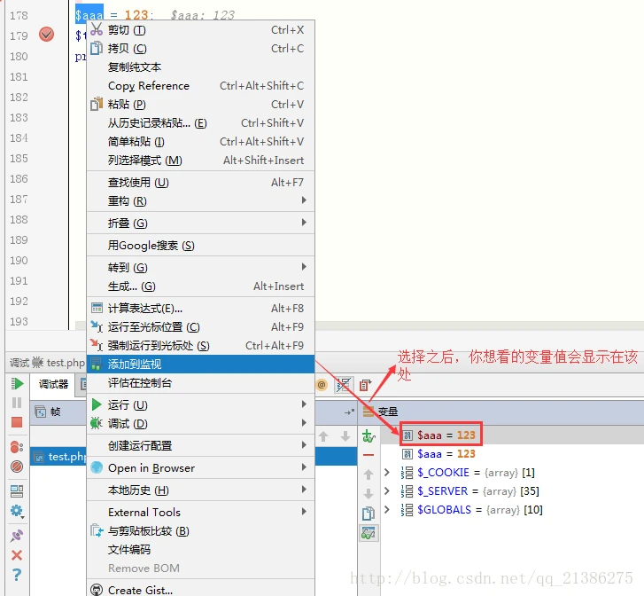 2、在你的phpstorm编辑器中,打开你在浏览器中页面要经过的代码,并按下图中操作。