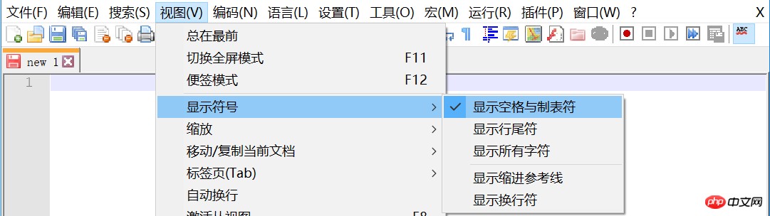 1显示空格和指标符
