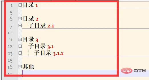 每一个Tab键下面都可以作为一个大纲的效果