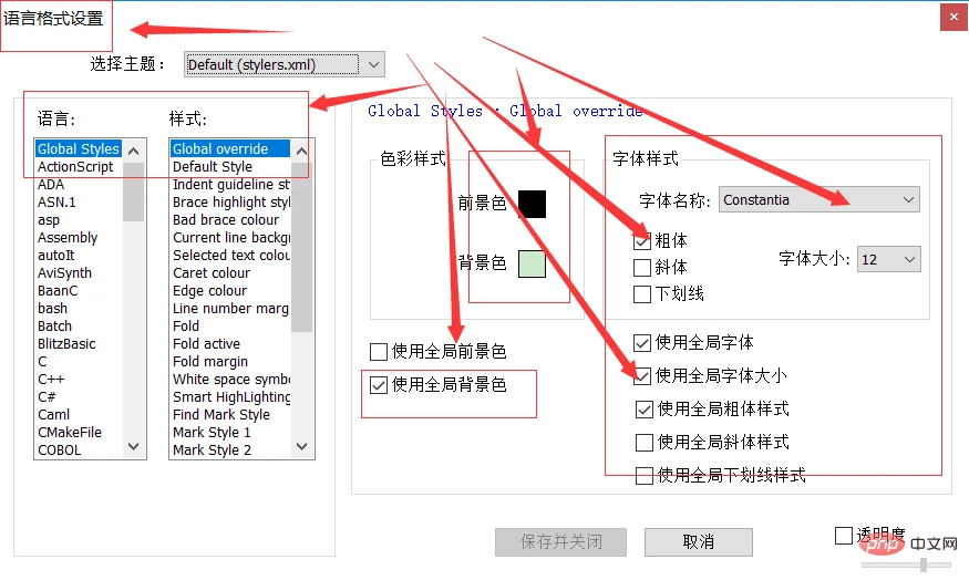 粗体。。使用全局字体。。使用全局字体大小。。使用全局粗体样式