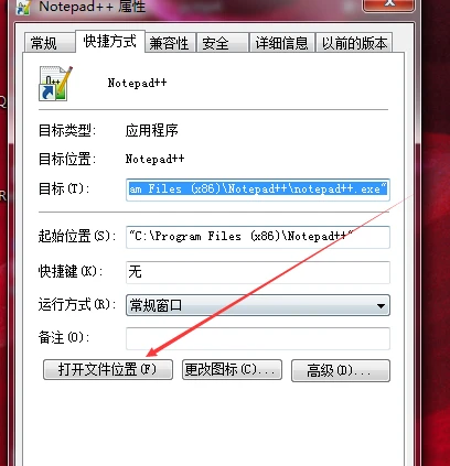 3、找到notepad++安装目录。在文件上点击鼠标右键查看属性就可以看到文件所在的目录