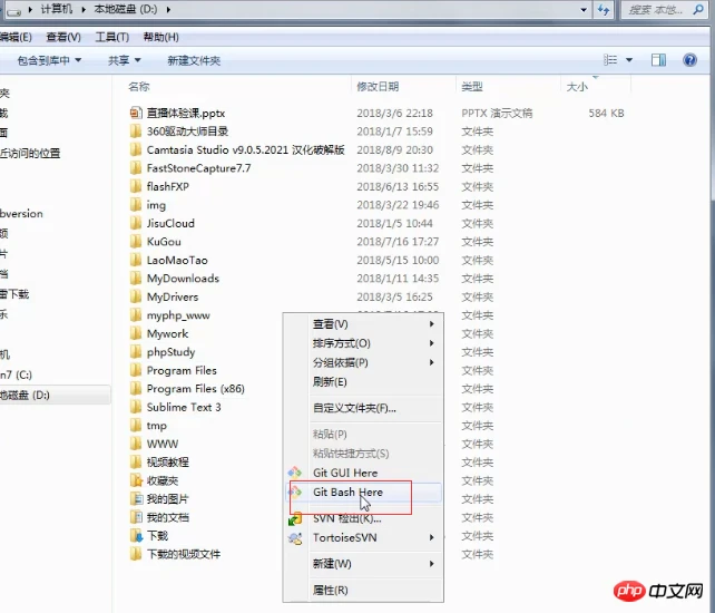 这里我们就可以点击Git bash here,打开Git工具的命令行模式。