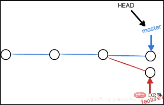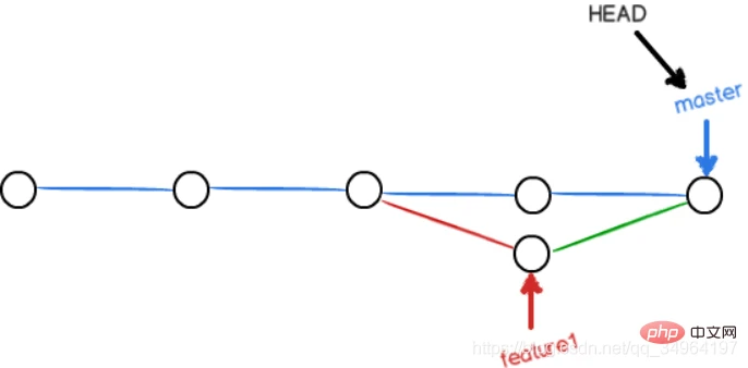 现在,master分支和feature1分支变成了下图所示: