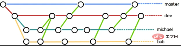 所以团队合作的分支看起来就像这张图一样: