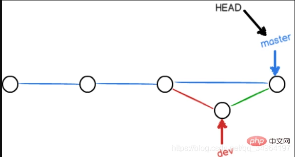 不使用Fast forward模式,merge后就像这样:如下图所示: