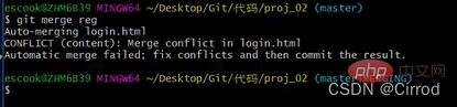 1#假设:在把reg分支合并到 master分支期间,代码发生了冲突 2 git checkout master 3 git merge reg