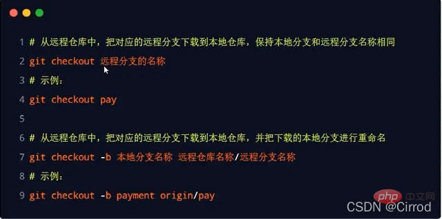 跟踪分支指的是:从远程仓库中,把远程分支下载到本地仓库中。需要运行的命令如下: