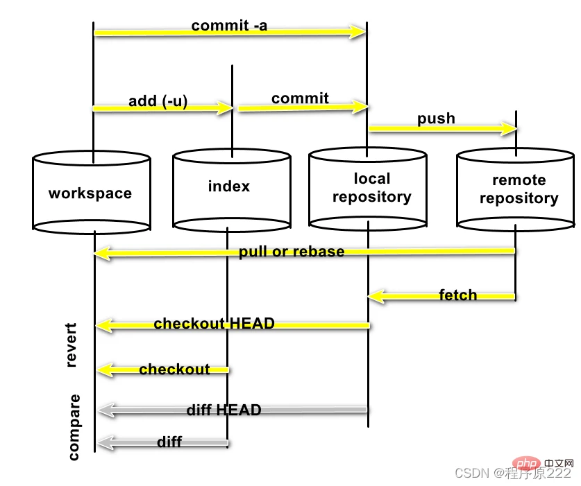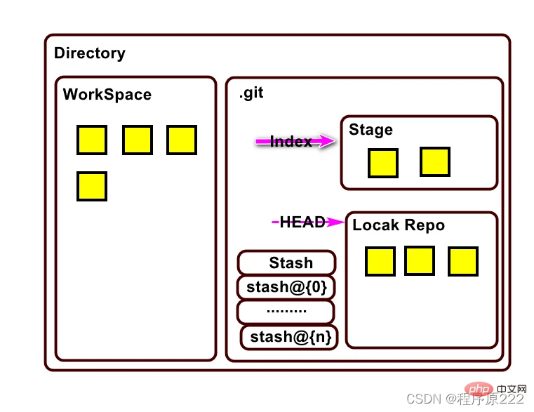 - Index/Stage:暂存区:用于临时存放你的改动,事实上它只是一个文件,保存即将提交到文件列表信息