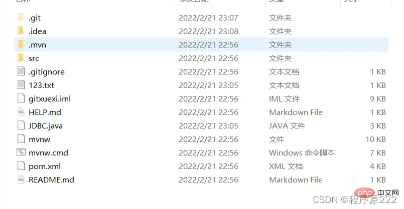 2.执行后可以看到,仅仅在项目目录多出了一个.git目录,关于版本等的所有信息都在这个目录里面。
