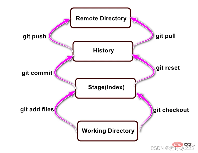 Git本地有三个工作区域:工作目录(Working Directory)、暂存区(Stage、Index)、资源库(Repository或Git Directory)。如果再加上远程的git仓库(Remote Directory)就可以分为四个工作区域。文件在这四个区域之间的转换关系如下: