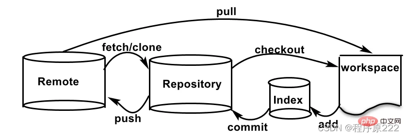 - Remote:远程仓库,托管代码的服务器,可以简单的认为是你项目组中的一台电脑用于远程数据交换。