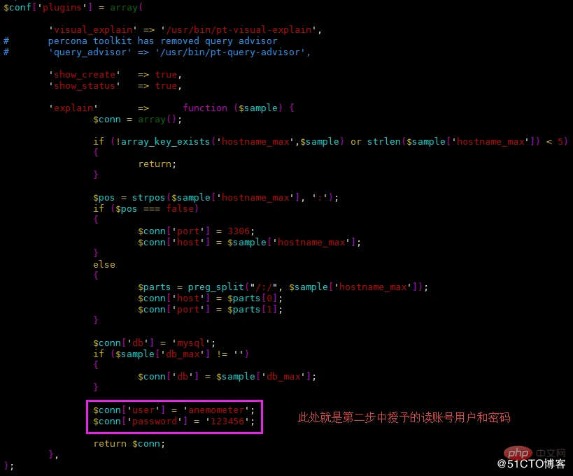 3、修改配置文件增加explain读取用户密码信息 cp conf/sample.config.inc.php conf/config.inc.php vim conf/config.inc.php\\