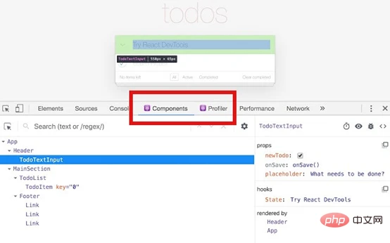 安装完成后,打开Chrome的开发人员工具你就能看到多出了Components和Profiler选项卡,“Components”选项能帮助你查看屏幕上组件列表以及从其他组件派生出的子组件,你能够选择检查甚至编辑组件的状态和属性。使用“Profiler”选项卡,你也可以评估应用程序的性能。