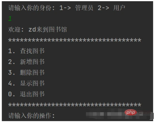 System.out.println("请输入你的身份: 1-> 管理员 2-> 用户");