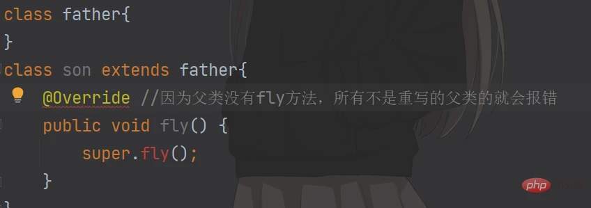 @Override表示son重写了fly方法